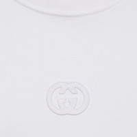 Earthy tones and muted shades of beige mix with vibrant touches of color to anticipate the arrival of a new season. Made from medium cotton jersey, this versatile T-shirt makes for a great layering piece. The Interlocking G embroidered patch offers a touch of definition to the silhouette. - Off white heavy cotton jersey - Interlocking G embroidered patch - Crewneck - Short sleeves - Two side slits - Rib trim - Made in Italy - The product shown in this image is a size medium