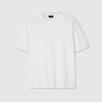 Introducing Spring Summer 2026. This style is inspired by the "L'Introverso" look of La Famiglia. The collection reinterprets the House’s codes through singular personalities and distinctive aesthetic attitudes. Crafted from light cotton jersey, this T-shirt is enriched with a Gucci crest devore detail. - Off white light cotton jersey - Gucci crest devore detail - Crewneck - Length: 24.8", based on a size S - Made in Italy - Fabric: 52% Cotton, 48% Polyester