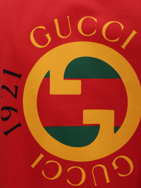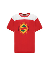 Cotton T-Shirt by Gucci, ribbed crew neck, two-tone pattern, brand's iconic monogram print applied to front, regular fit. DETAILS sku 756708XJFWL_6362 composition : COTTON 100% color group : RED gender : MAN season : AW23 size chart : MAN STANDARD category name : SWEATSHIRTS icon : icon