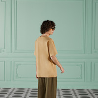 The Gucci logo continues to evolve, this mirrored version continues to make an impact throughout Gucci's collections. The print is depicted on a blue cotton jersey base in an oversize fit. - Camel cotton jersey - Gucci mirror print - Crewneck - Short sleeves - Oversize fit - Length: 29.1" based on a size small - Made in Italy - The model is 6'1" and is wearing size medium.