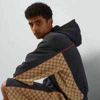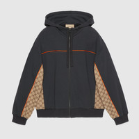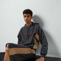 The House continues to play with different aesthetics, infusing the daily with signature styles and symbols. Crafted from dark grey cotton jersey, this zip jacket is enriched by a GG canvas insert, adding a subtle logo touch to the style. - Dark grey light felted cotton jersey - Contrast piping - Beige and ebony GG canvas inserts - Fixed hood with drawstring - Long sleeves - Zip closure - Made in Italy - The product shown in this image is a size small