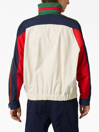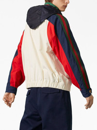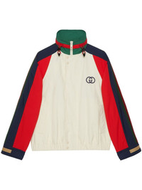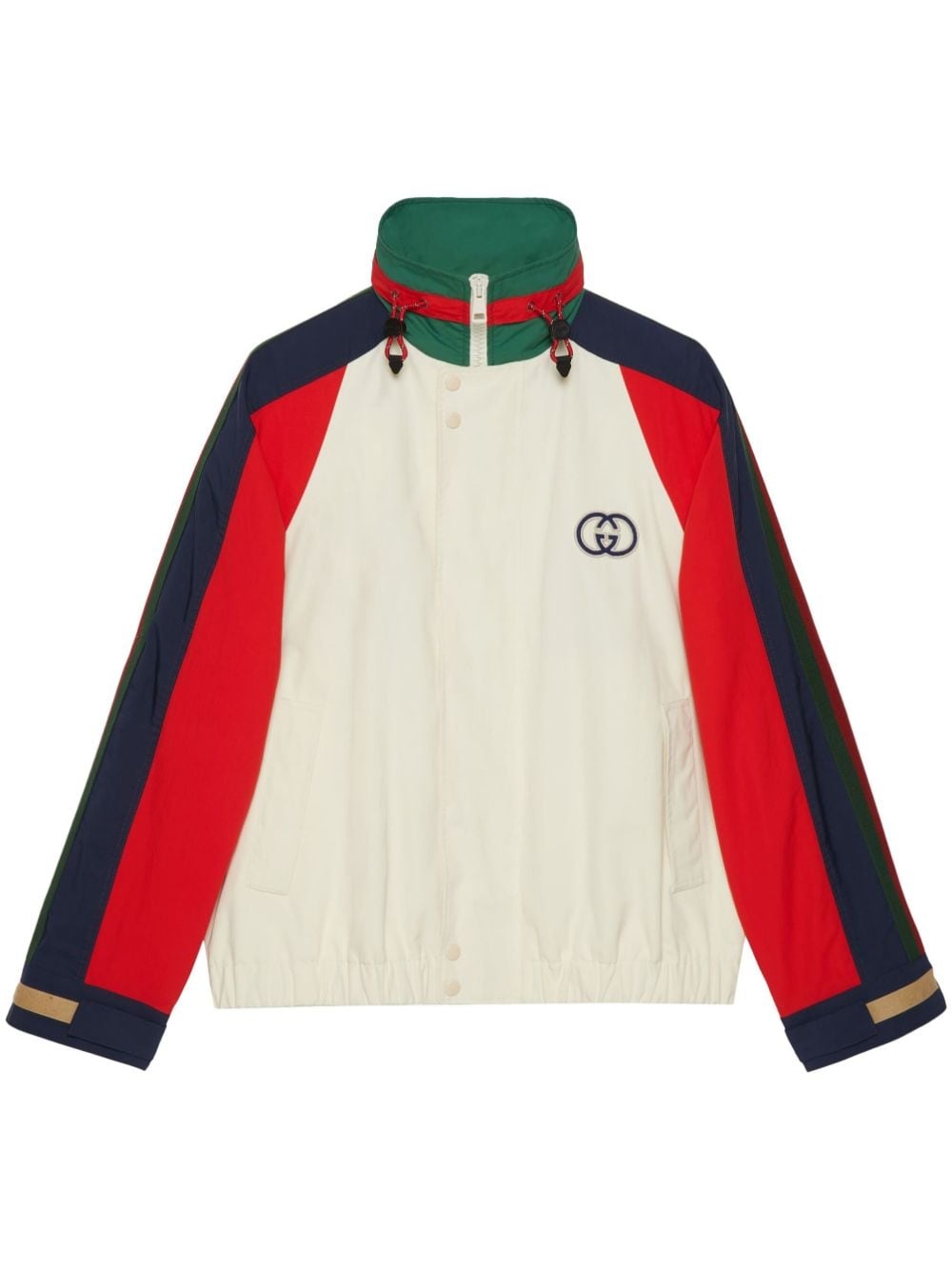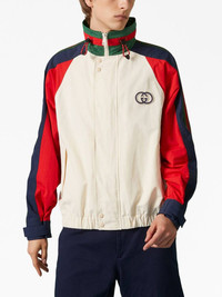 Interlocking G logo bomber jacket Highlights - White/multicolour - Cotton - Signature interlocking g logo - Signature web-stripe dial - Colour-block design - Mesh detailing - High neck - Concealed hood - Concealed front fastening - Drawstring fastening - Long raglan sleeves - Touch-strap cuffs - Two front welt pockets - Elasticated hem Composition Nylon 100%, Cotton 100%