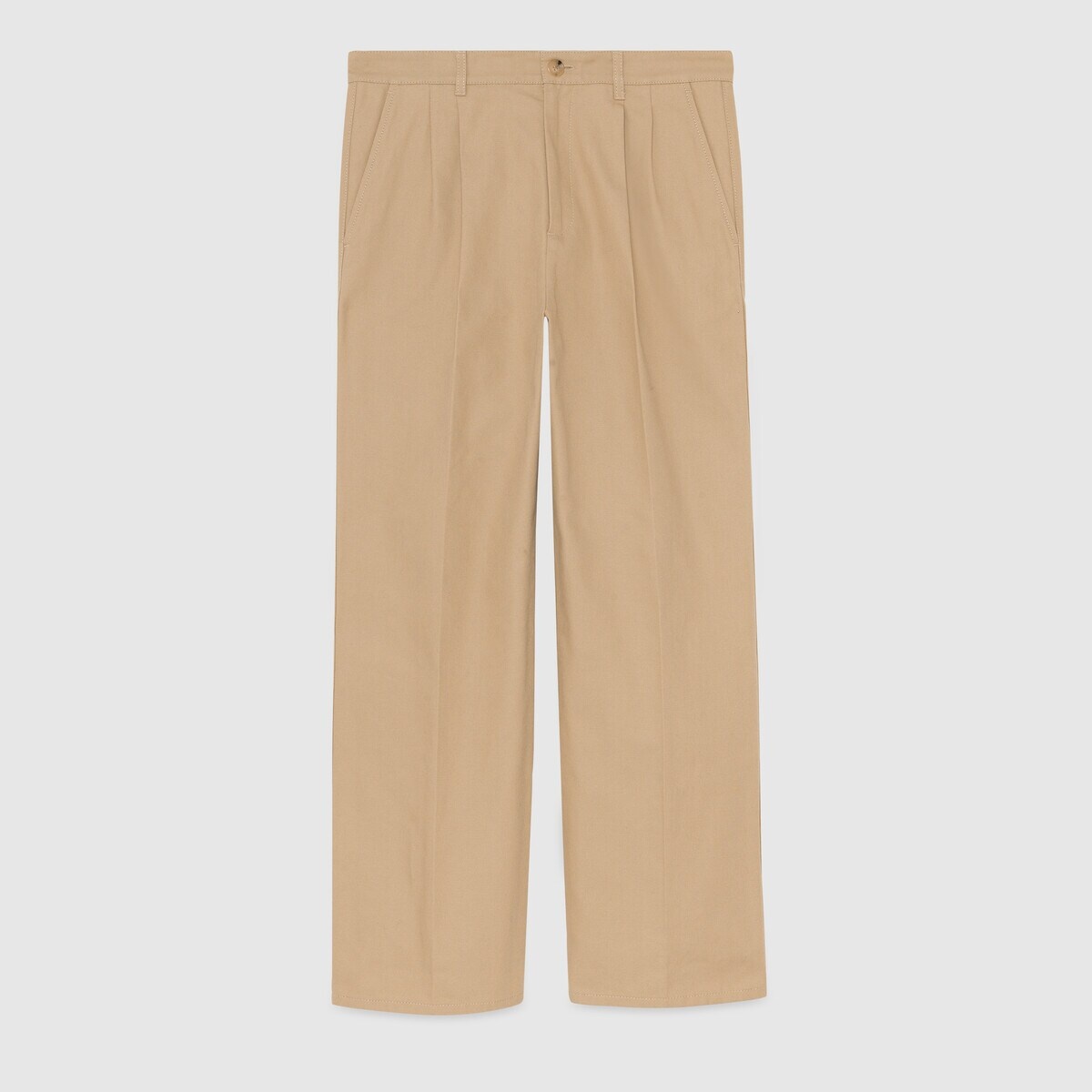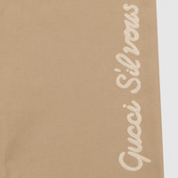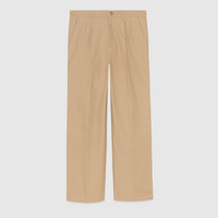 Playing with fresh fabrics and silhouettes, the Pre-Fall 2023 collection is defined by classic and sophisticated references. Part of the selection, this organic cotton pant is presented in beige cotton and decorated with a 'Gucci S'Il Vous Plaît' embroidery. - Beige cotton - 'Gucci S'Il Vous Plaît' embroidered patch - Front slash pockets - Back besom pockets - Button and zip closure - Leg opening: 9.8", based on a size 50 (IT) - Made in Italy - The product shown in this image is a size 46 (IT)
