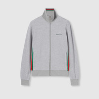 A selection of ready-to-wear pieces is enriched with heritage details of the House. Crafted from grey melange cotton piquet double, this zip jacket features a signature Web stripe trim and is finished with an embroidered logo detail. - Grey melange cotton piquet double - Web stripe trim - Gucci embroidery - High neck - Long sleeves - Front zip closure - Made in Italy