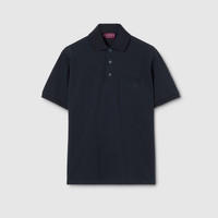 The Cruise 2026 men's collection is a journey through legacy and modernity rooted in Gucci's archives. Crafted from stretch cotton piquet, this polo shirt is enriched with an Horsebit embroidery. - Dark blue stretch cotton piquet - Horsebit embroidery - Polo collar - Chest pocket - Side slits - Short sleeves - Button closure - Length: 28.3" based on a size S - Fabric: 97% Cotton, 3% Elastane - Trimming: 100% Cotton - Embroidery: 100% Polyester