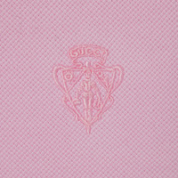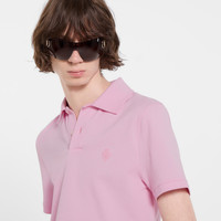 Introducing Spring Summer 2026. This style is inspired by the "Bastardo" look of La Famiglia. The collection reinterprets the House’s codes through singular personalities and distinctive aesthetic attitudes. Crafted from stretch cotton piquet, this polo shirt is enriched with a Gucci crest embroidery. - Light pink stretch cotton piquet - Gucci crest embroidery - Polo collar - Short sleeves - Front button closure - Length: 22.8", based on a size XS - Made in Italy - Fabric: 97% Cotton, 3% Elastane - Embroidery: 100% Polyester