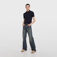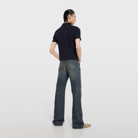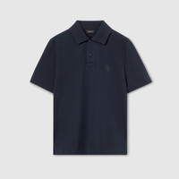 Introducing Spring Summer 2026. This style is inspired by the "Bastardo" look of La Famiglia. The collection reinterprets the House’s codes through singular personalities and distinctive aesthetic attitudes. Crafted from stretch cotton piquet, this polo shirt is enriched with a Gucci crest embroidery. - Dark blue stretch cotton piquet - Gucci crest embroidery - Polo collar - Short sleeves - Front button closure - Length: 22.8", based on a size XS - Made in Italy - Fabric: 97% Cotton, 3% Elastane - Embroidery: 100% Polyester