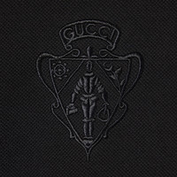 Introducing Spring Summer 2026. This style is part of the La Famiglia collection, which reinterprets the House’s codes through singular personalities and distinctive aesthetic attitudes. Crafted from stretch cotton piquet, this shirt is enriched with a Gucci crest embroidery. - Black stretch cotton piquet - Gucci crest embroidery - Long sleeves - Front button closure - Length: 27.9", based on a size S - Made in Italy - Fabric: 97% Cotton, 3% Elastane - Embroidery: 100% Polyester