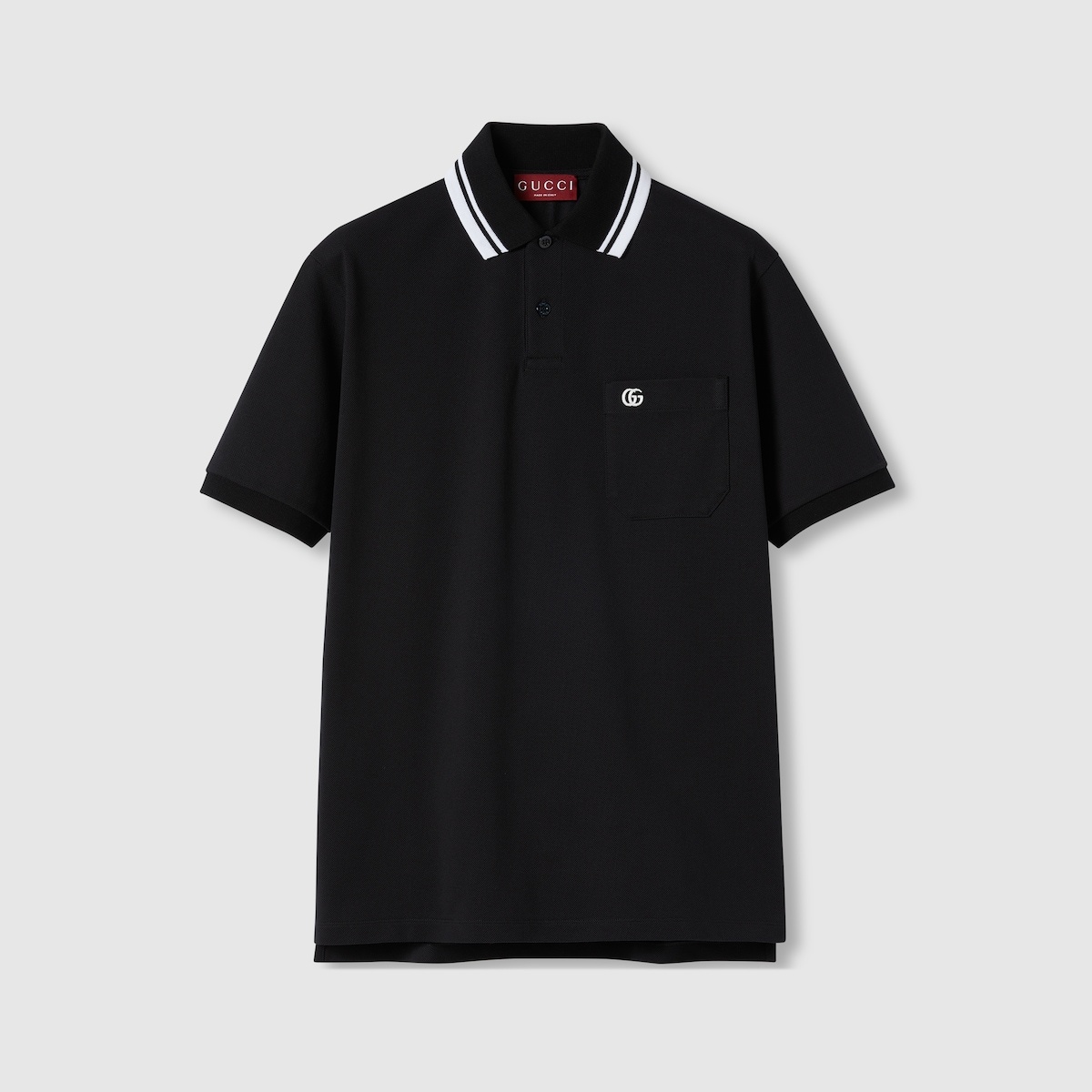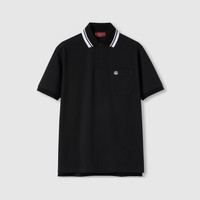 Classics such as soft knitwear and polo shirts throughout the Cruise 2025 collection stand out with subtle details that elevate everyday looks. This regular fit polo shirt is presented in a stretch cotton piquet and enriched with a contrasting Double G embroidery and Web detail across the collar. - Black stretch cotton piquet - Double G embroidery - Polo collar with Web detail - Dropped shoulder - Short sleeves - Chest pocket - Rib trim - Shoulder drop: 18.1"; based on a size S - Chest: 21.6"; based on a size S - Sleeves length: 9.2"; based on a size S - Button closure - Regular fit - Length: 28.7"; based on a size S - Made in Italy - The product shown in this image is a size small