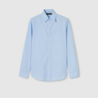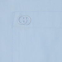 Introducing Spring Summer 2026. This style is inspired by the "Direttore" look of La Famiglia. The collection reinterprets the House’s codes through singular personalities and distinctive aesthetic attitudes. Crafted from piece dyed cotton poplin, this shirt is enriched with an Interlocking G embroidery. - Light blue piece dyed cotton poplin - Interlocking G embroidery - Point collar - Chest pocket - Long sleeves - Front button closure - Length: 29.9"; Sleeves length: 34.2", based on a size 15 - Made in Italy - Fabric: 100% Cotton - Embroidery: 100% Polyester