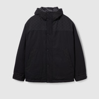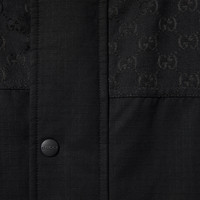 Soft, textured materials define a selection of winter wardrobe pieces, for city or alpine strolls. Crafted from black cotton ripstop, this padded jacket is enriched with GG canvas inserts. - Black cotton ripstop - GG canvas insert - Gucci logo detail - Padded - Fixed hood - Front side pockets - Button and zip closure - Made in Italy