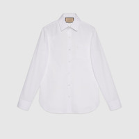 A concept continuously explored by the Creative Director, tailor-inspired pieces combine sartorial excellence and an eclectic vision. This cotton shirt has a tonal Double G embroidery that gives a subtle nod to the House. - White cotton - Double G embroidery - Long sleeves - Point collar - Button-through cuffs - Mother of pearl buttons - Made in Italy - The product shown in this image is a size 15++