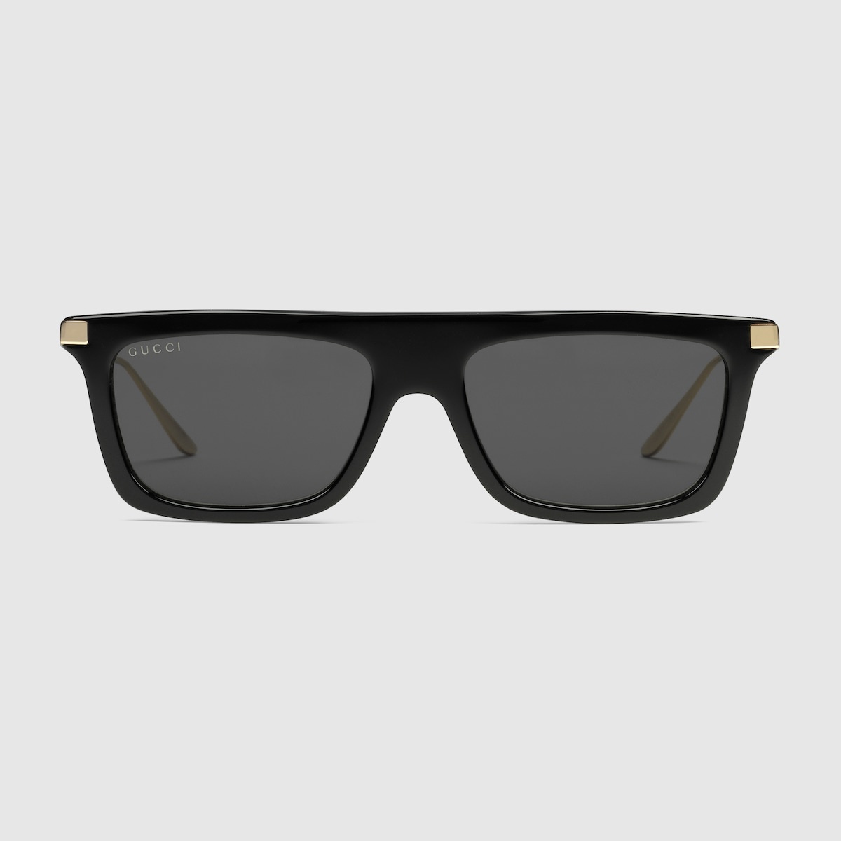 For the Pre-Fall 2023, narrow rectangular frames add a charm to a selection of sunglasses. The signature Interlocking G and stripe details decorate the gold-toned metal temples, completing the silhouette with an archival code. A grey lens completes the black acetate frame. - Shiny black acetate frame - Shiny gold-toned metal temples with Interlocking G and enamel Web detail - Solid grey lens - 100% UVA/UVB protection - Frame height: 1.6"; Frame width: 6" - GG1437S - Temple length: 5.7"; Lens height: 1.4", Nose bridge length: 0.7" - The glasses will arrive in a velvet case, available in a range of six jewel-toned colors and paired with a coordinating satin lining. The case color will be individually selected for each pair of glasses and comes with a matching satin flannel pouch and ivory microfiber cloth.