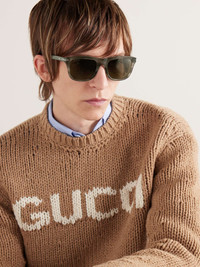 Gucci Eyewear's sunglasses have classic D-frames that will complement most face shapes. Made from recycled-acetate, this pair is fitted with glare-reducing lenses and has the logo subtly etched onto the temples. Size & Fit - Frame Width: 14.5cm / 5.7in - Frame Height: 5.5cm / 2.2in Details & Care - Tonal-grey recycled-acetate - Come with a case - 100% UV protection