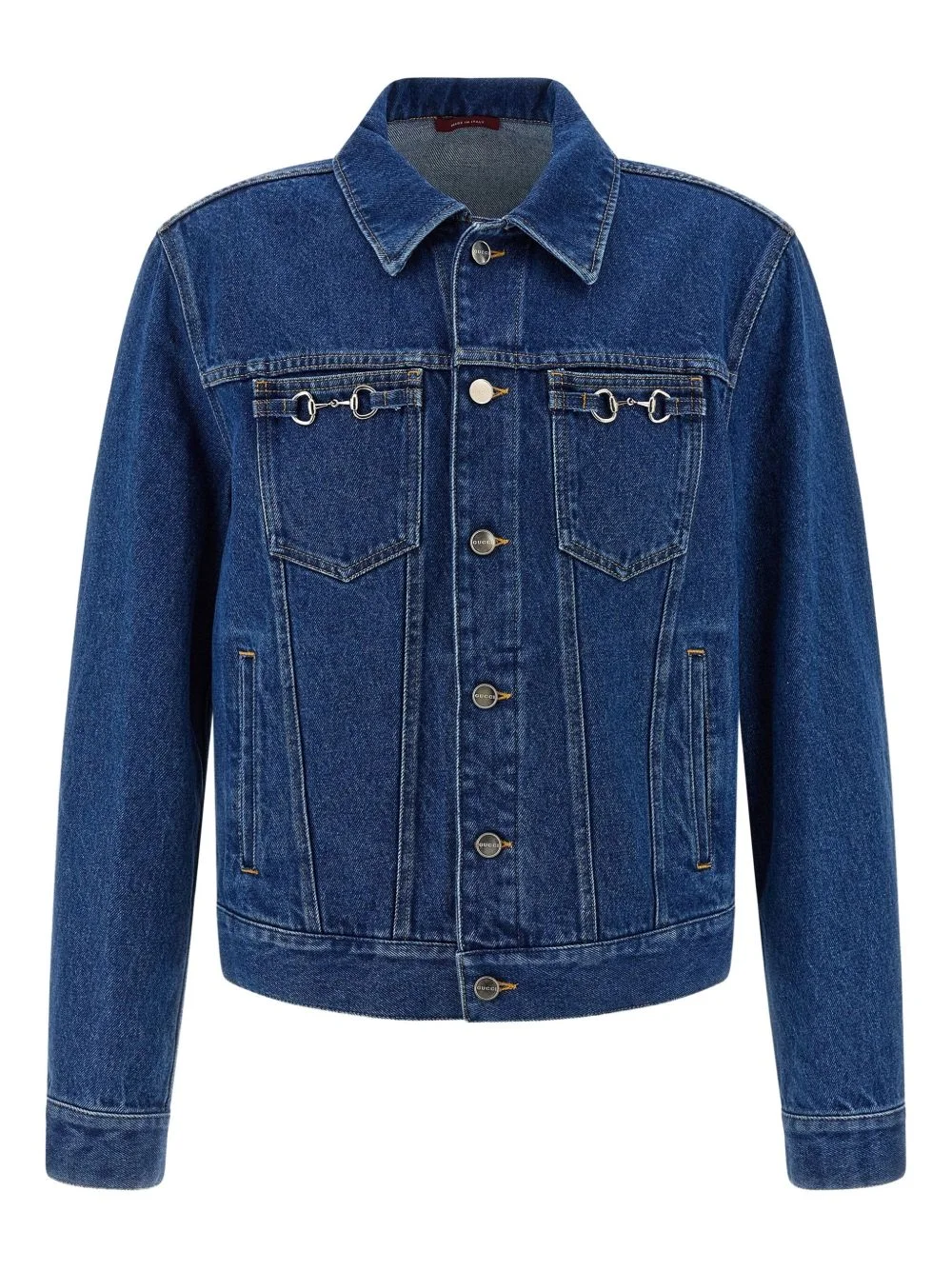 contrast-stitching horsebit denim jacket Highlights - Blue - Contrast stitching - Shirt collar - Button closure - Cuffed sleeves Made in Italy Composition Cotton 100% Washing instructions Read Manufacturer Guidelines