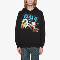 Imbued with a playful spirit, legendary Disney characters continue to enrich the House's narrative. Donald Duck adds a whimsical feel to signature shapes and designs. Here, its image is printed atop a hooded sweatshirt, crafted from washed felted cotton jersey and treated for a vintage, distressed look. - Washed black light felted cotton jersey with holes in the fabric for a vintage effect - Donald Duck print © Disney - This product contains organic cotton where the cultivation and manufacturing process restrict the use of chemicals, eliminate pesticides or artificial fertilizers and incorporate methods that respect biodiversity, improve soil quality, and reduce water consumption. - Fixed hood - Made in Italy - The model is 6' and is wearing size small