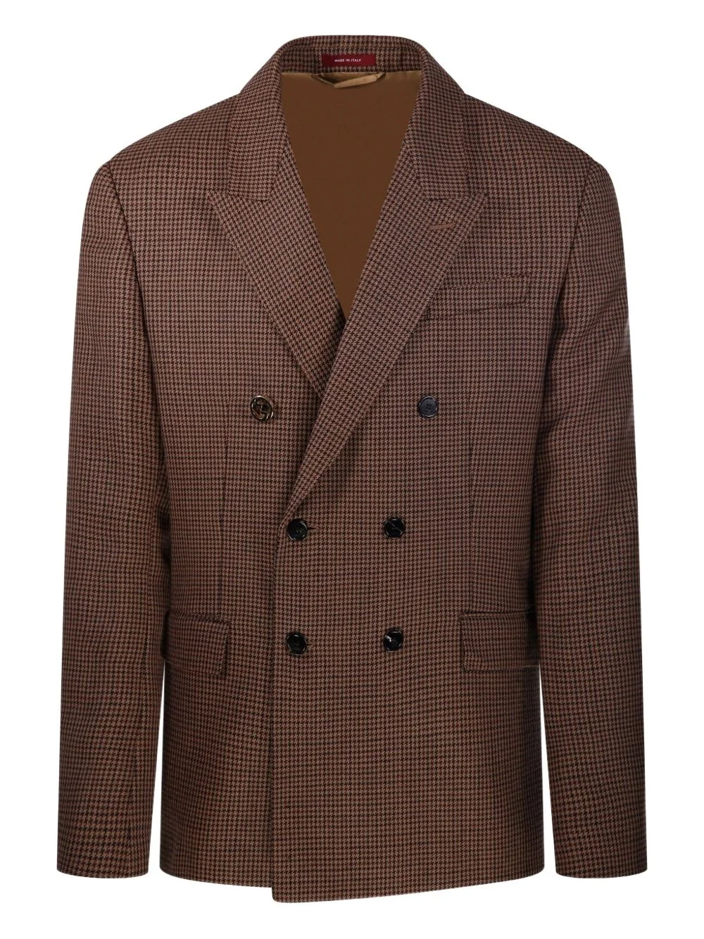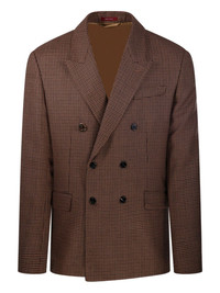 double-breasted checked jacket Highlights - Beige and brown - Check pattern - Double-breasted button fastening - Peak lapels - Front flap pockets Made in Italy Composition Fabric 100% Washing instructions Read Manufacturer Guidelines