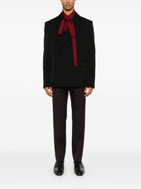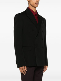 double-breasted wool blazer Highlights - Black - Wool - Double-breasted button fastening - Peak lapels - Long sleeves - Buttoned cuffs - Chest welt pocket - Two front flap pockets - American rear vent - Full lining - Multiple internal slip pockets - Straight hem Made in Italy Composition Lining: Viscose 100% Outer: Wool 100% SIZE & FIT Model measurements Height 6 ft 2 in(1.87 m) Bust/Chest 38.18 in(97 cm) Hips 36.61 in(93 cm) Waist 29.13 in(74 cm) FittingInformation Designed for a boxy fit, intended for a loose fit throughout The internal shoulder pads offer a structured shape Made from a midweight non-stretch fabric