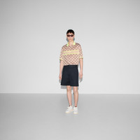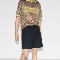 Inspired by the summer spirit and beach clubs on the Italian coast, this item is part of Gucci Lido. The Pre-Fall selections spotlight essential silhouettes with emblematic details from daywear to eveningwear. These straight-cut shorts are presented in a double cotton twill and reveal a green and red Web ribbon insert. - Dark blue double cotton twill - Green and red Web ribbon insert - Gucci label - Belt loops - Two front slash pockets - Back besom pocket - Back patch pocket - Waist: 17.3"; based on size 48 - Hips: 21.2"; based on size 48 - Tab and hook closure - Regular fit - Length: 19.6"; based on size 48 - Leg opening: 12.9"; based on size 48 - Made in Italy - The product shown in the image is a size 46 (IT)