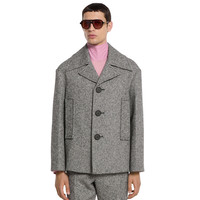 In the Fall Winter 2025 collection, this single-breasted caban is defined by a classic notch lapel and horn buttons. The lined design features two front pockets. - White and black double cotton wool fabric - Horn buttons - Lined - Notch lapel - Single-breasted - Two welt pockets - Regular fit - Total length: 29.9"; Shoulder: 21.2"; Chest: 24.4"; Sleeve length: 36.2"; (size 50 IT)