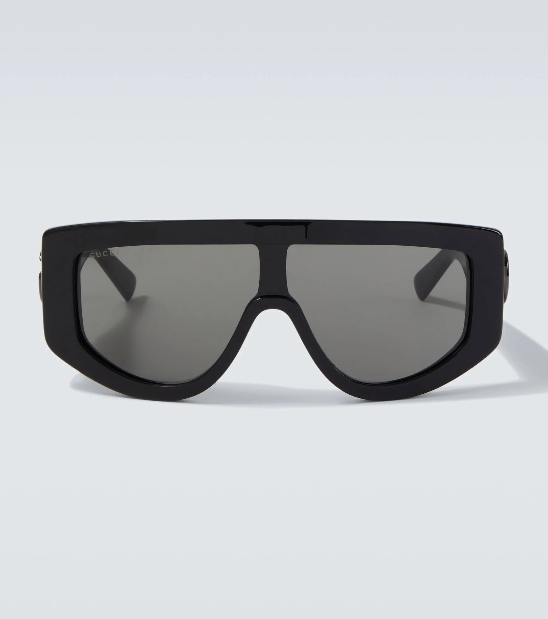 These oversized flat-top sunglasses will elevate your daytime looks in signature Gucci style. Crafted in Italy from black acetate, the pair features tonal Double G detailing at the temples. Product Details - Frame material: acetate - Frame color: black - Lens filter category 3 - Lens color: grey - Made in Italy - Includes: case, cleaning cloth - The color of the case may vary - Item number: P01099579 Size & Fit - Lens width: 90mm-3.55" - Bridge size: 10mm-0.4" - Earpiece length: 130mm-5.1"