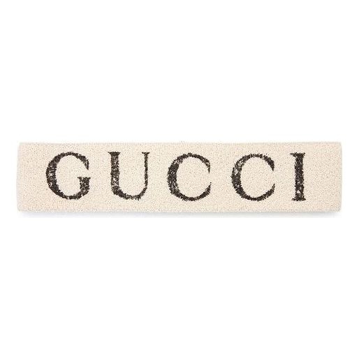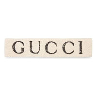 Retro inspired sportswear was intertwined on the Fall Winter 2017 runway. Inspired by sweatbands worn in the '80s, the elastic hairband features a Gucci print and is treated for an allover vintage effect. - White elastic with black Gucci print - Vintage effect - Made in Italy