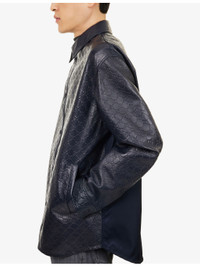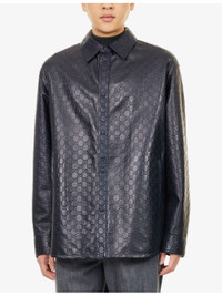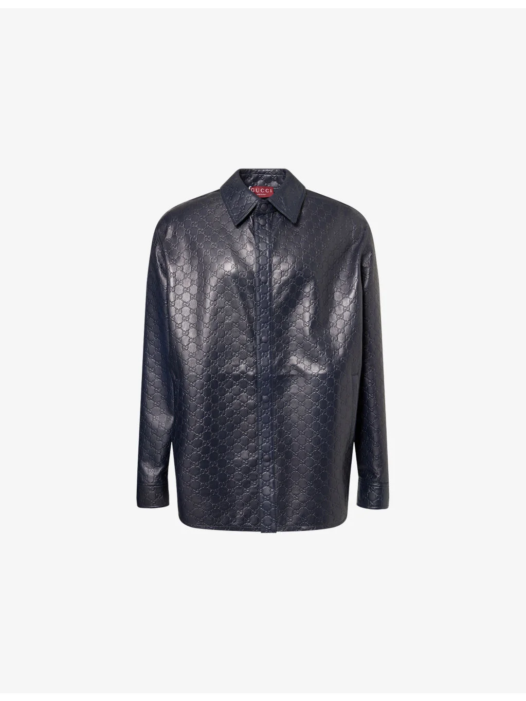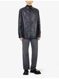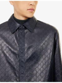 Embossed Monogram-Pattern Long-Sleeve Faux-Leather Shirt