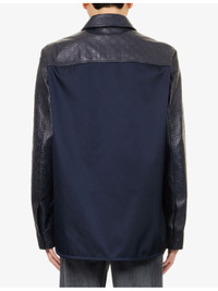 PRODUCT DETAILS - Gucci faux-leather shirt - 100% polyamide - Exposed button fastening at front - Pointed collar, long sleeves, press-stud fastening at cuffs, two welt pockets at front, curved hem - Specialist leather clean - Made in Italy - Size : length 29.5in / 75cm, chest 50.3in / 128cm - Model is 6ft 2in/1.88m and wears a size UK 40 - Midweight, non-stretch Ref: R04481472