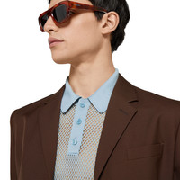 In the Spring Summer 2025 collection, polo tops in fresh colors like green and light blue are crafted from modern materials like technical mesh knit. An embossed Gucci logo decorates the front of this style with long sleeves and a half button closure. - Light blue technical mesh knit - Polo collar - Embossed Gucci logo - Long sleeves - Half button closure - Length: 25.6", based on a size S - Made in Italy - The product shown in this image is a size small