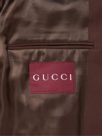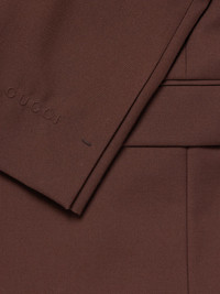 For SS25, Gucci styled this blazer with coordinating trousers, a sky-blue polo and a mini bag slung across the chest. Tailored from wool-twill, it's cut with notch lapels and a concealed placket for a clean finish. The minimal detailing gives you licence to play with accessories and colour. Size & Fit - Fits true to size. Take your normal size - Tailored for a slim fit - Mid-weight, non-stretchy fabric - Model is shown wearing an IT 48 - Model measures: chest 38"/ 96cm, height 6'3"/ 191cm Details & Care - Chocolate wool-twill - Notch lapels, chest welt pocket, two front flap pockets, internal pocket, fully lined - Button fastenings - 100% wool; buttons: 100% horn (Buffalo); lining: 100% viscose - Dry clean