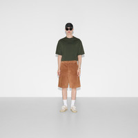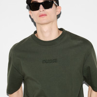 Gucci's House codes continue to evolve for the new season across jersey pieces. This oversize fit T-shirt has been crafted from a medium cotton jersey and enriched with a Gucci embroidery. - Dark green medium cotton jersey - Gucci embroidery - Crewneck - Short sleeves - Shoulder drop: 21"; based on a size S - Chest: 23.2"; based on a size S - Sleeves length: 10.6"; based on a size S - Oversize fit - Length: 30"; based on a size S - Made in Italy - The product shown in this image is a size small
