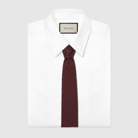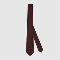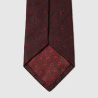 Horsebit details and riding motifs in sophisticated tones pay homage to the House's link with the equestrian world. This tie is presented in an equestrian motif silk jacquard and reveals a Gucci bee label on the reverse. - Bordeaux equestrian motif silk jacquard - Gucci bee label on the back - 2.75”W x 57.5”L - Made in Italy