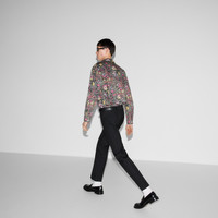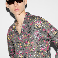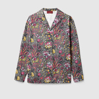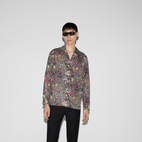 Inspired by the summer spirit and beach clubs on the Italian coast, this item is part of Gucci Lido. This regular fit shirt is presented in a grey and pink cotton poplin with an allover Gucci floral punk print. - Grey and pink cotton poplin - Allover Gucci floral punk print - Open collar - Long sleeves - Chest pocket - Side slits - Shoulder drop: 20"; based on a size 48 - Chest: 46.8"; based on a size 48 - Sleeve length: 35"; based on a size 48 - Button closure - Regular fit - Length: 29.5"; based on a size 48 - Made in Italy - The product shown in the image is a size 48 (IT)