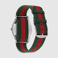 The G-Timeless line continues to define the latest collections, highlighting the signature motifs of the House. Presented with a green and red nylon strap, the accessory features a stainless steel case and a silver-toned dial enriched with emblematic codes. - 38mm stainless steel case - Silver-toned dial with Interlocking G, Gucci logo, date at 3 o' clock - Sapphire glass with antireflective coating - Green and red nylon strap - The warranty certificates for Gucci watches purchased after March 1st 2022 are exclusively available online. - Download your certificate at - by using the serial number engraved on the back of your watch. - Quartz movement - 5 ATM (164 feet/50 meters) - YA1264236 - Wrist size from 5.9" to 7.8" - Swiss Made