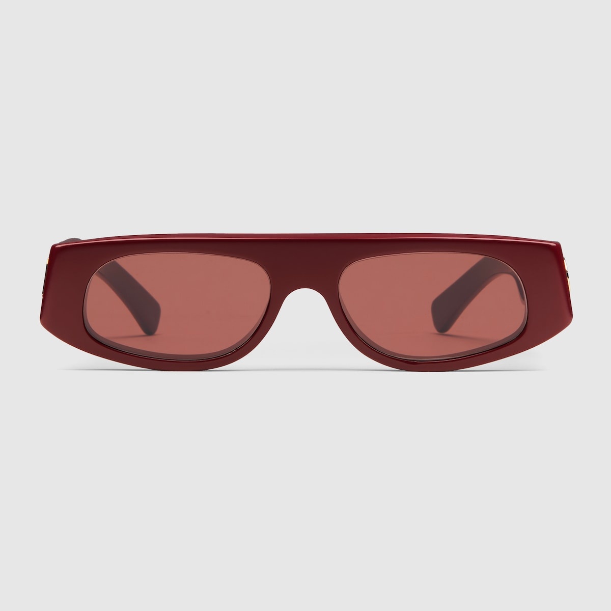 Inspired by the summer spirit and beach clubs on the Italian coast, this item is part of Gucci Lido. This pair of burgundy sunglasses are crafted in shiny acetate. The geometric-shaped frame is enhanced by a gold-toned Gucci script detail on the temples, while the solid brown lenses complete the style. - Shiny burgundy acetate frame - Shiny burgundy acetate temples with gold-toned Gucci script - Solid brown lens - 100% UVA/UVB protection - GG1771S - Made in Italy - The Rosso Ancora packaging, a distinctive color chosen by Creative Director Sabato De Sarno to mark the beginning of Gucci's new creative chapter, includes a vinyl case and satin pouch.