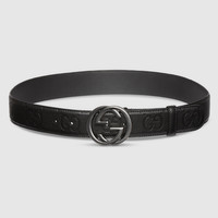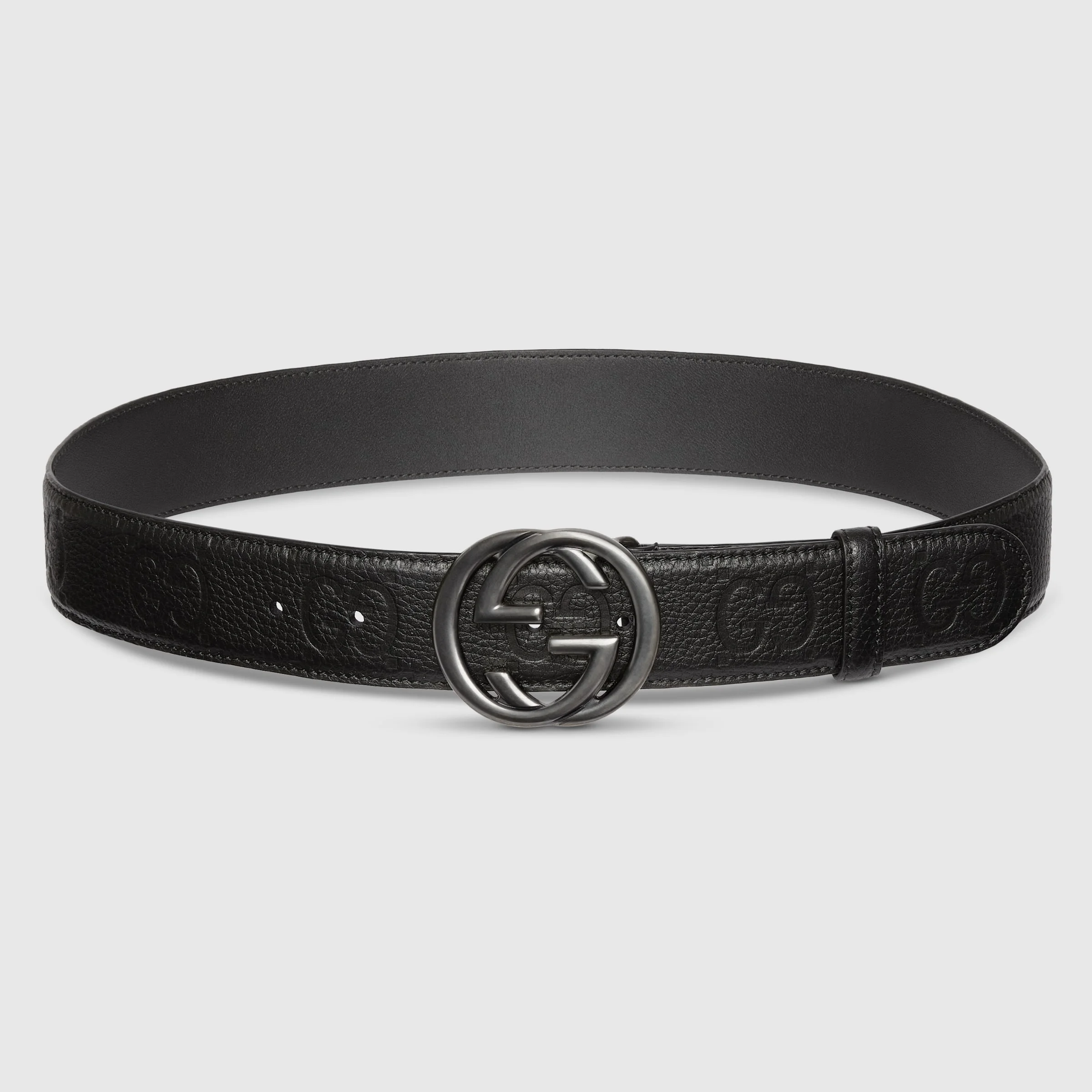 Deepening this style's connection to the House's heritage, the Interlocking G comes to the fore of the design as a ruthenium hardware. Here, this belt is presented in black maxi GG grainy leather. - Black maxi GG grainy leather - Ruthenium hardware - Interlocking G buckle - 1.5" width - Made in Italy - Can be worn as a hip or waist belt. Sizing will differ based on where the belt is worn, please refer to the size guide to find your size.