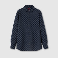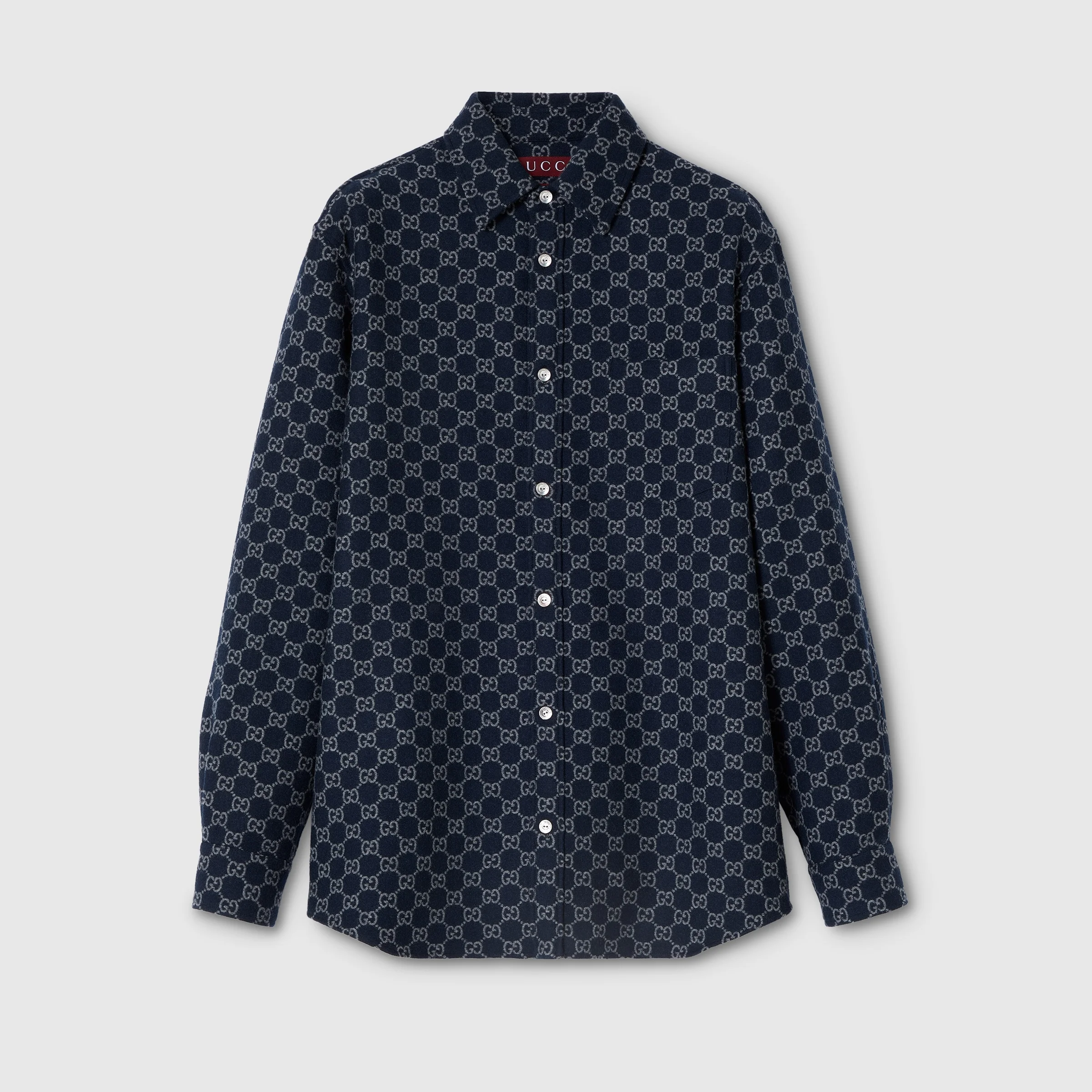 The distinctive GG is translated across different textile techniques in the collection, offering visual richness. This shirt is crafted from blue and light blue GG soft brushed flannel. - Blue and light blue GG soft brushed flannel - Rounded hem - Long sleeves - Chest pocket - Front button closure - Length: 32.7"; Sleeves length: 36.2"; based on a size 48 IT
