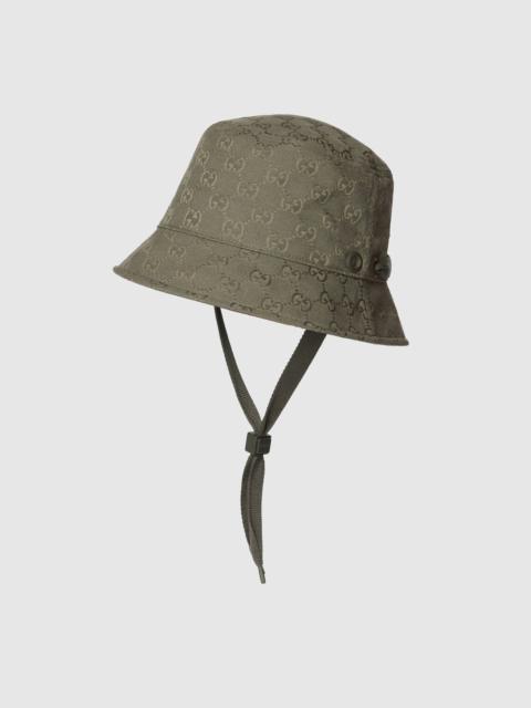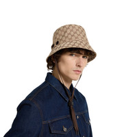 The Pre-Fall 2025 soft accessories collection animate House codes through sophisticated trimmings, logo patches and subtle embroideries. This bucket hat has been crafted from a GG canvas and is completed with a laced chin tie. - Beige and dark brown GG canvas - Unlined - Eyelet detail - Laced chin tie - Made in Italy