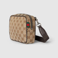 The GG canvas pays homage to founder Guccio Gucci's instantly-recognizable monogram. Completed with a green and red Web detail and a brown leather trim, this everyday accessory makes for a desirable companion. - Beige and dark brown GG canvas - Dark brown leather trim - Green and red Web detail - Nylon and moire lining - Outside: 1 back pocket, 1 card slot - Detachable and adjustable canvas shoulder strap with 21.6" drop - Zip closure - 6.9"W x 5.5"H x 1.9"D - Weight: 348g, approximately - Made in Italy - Fits iPhone Pro Max/Plus, bi-fold wallet or card case, and Airpods