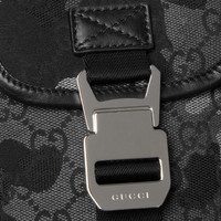 The men's small leather goods collection introduces dynamic shapes in grey and black camouflage print GG canvas, with lightweight construction, ergonomic funtionality, and utilitarian details, such as the innovative magnetic buckle. This mini bag is presented in marbled GG canvas with a black leather trim. - Black and grey camouflage marbled GG canvas - Black leather trim - Black nylon lining - Inside: 1 card slot - Handle drop: 1.1" - Adjustable canvas shoulder strap with 20.8" drop - Flap and magnetic snap closure - 4.7"W x 7"H x 2.3"D