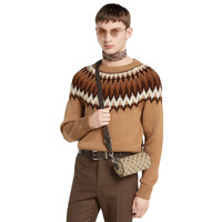 The GG canvas pays homage to founder Guccio Gucci's instantly-recognizable monogram. Completed with a green and red Web detail and a brown leather trim, this everyday accessory makes for a desirable companion. - Beige and dark brown GG canvas - Dark brown leather trim - Green and red Web detail - Nylon and moire lining - Fits iPhone Pro Max/Plus, bi-fold wallet or card case, and Airpods - Adjustable canvas shoulder strap with 22.4" drop - Zip closure - 6.8"W x 3.1"H x 3.1"D - Weight: 0.5lbs, approximately - Made in Italy