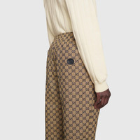 A pair of drawstring canvas pants brings the concept of comfort into contemporary fashion. Accentuated by a leather Interlocking G patch at the back, the style is further elevated by rich history. - Beige and blue GG canvas - Leather Interlocking G patch - Elastic waistband with drawstring waist - Front slant pockets and back patch pockets - Straight leg - Leg opening: 8.7" - Made in Italy - The model is 5'9" tall. The product shown in this image is a size 46 (IT)