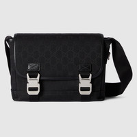 Presented as part of the Cruise 2026 collection, this crossbody bag is stated in black GG canvas and enriched with a black leather trim. - Black GG canvas - Black leather trim - Black nylon lining - Inside: 1 zip pocket - Adjustable canvas shoulder strap with 30.3" - 49.6" drop - Buckle closure - 9.8"W x 7.8"H x 3.3"D - Weight: 1.1lbs, approximately - Fits iPhone Pro Max/Plus, bi-fold wallet or card case, and Airpods