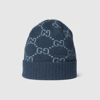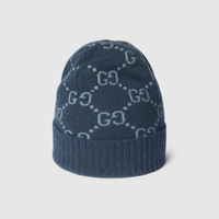 A signature symbol of the House, the GG monogram is displayed atop a selection of silk and soft accessories in a delicate color palette. This versatile hat has been crafted from a GG cashmere jacquard and completed with a rib knit trim. - Navy and light blue GG cashmere jacquard - Rib knit trim - Made in Italy