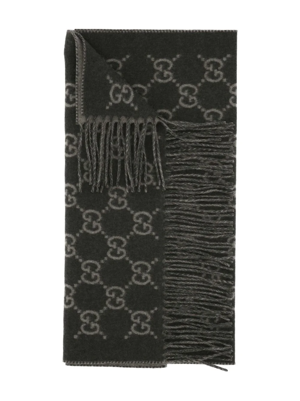 logo scarf Highlights - Dark green - Logo pattern - Fringed edge Made in Italy Composition Cashmere 100% SIZE & FIT Measurement LENGTH 74.8 in(190 cm) WIDTH 17.71 in(45 cm) Washing instructions Dry Clean Only