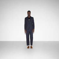 Further exploring tailoring possibilities, suit seperates inspired by made-to-measure retro elegance appear throughout the Gucci Love Parade collection. This single-breasted jacket is crafted from GG canvas—first presented during the ‘30s, the distinctive GG motif has been the inspiration for new explorations of expression for almost a century. - GG blue cotton blend - Fully lined - Single breasted - Notch lapel - Front patch pockets - Front chest pocket - Length: 27.4" based on a size 48 (IT) - Made in Italy - The product shown in this image is a size 48(IT)