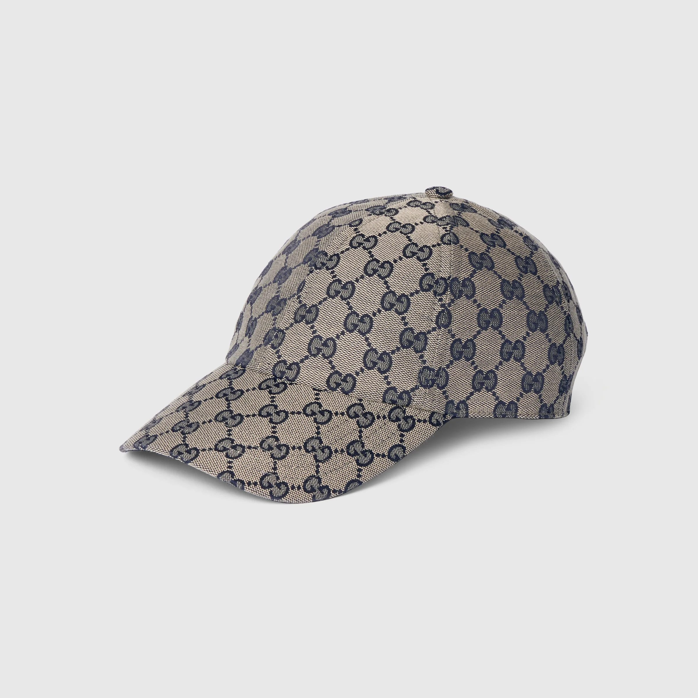 The House continues to explore its connection to the world of tennis that began in the 1970s. As a tribute to the US Open signature colors, a blue and yellow trim completes this beige and blue GG cotton canvas baseball hat. - Beige and blue GG cotton canvas - Blue and yellow trim - Cotton lining - Adjustable hook and loop closure - Made in Italy