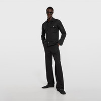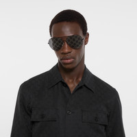 Introducing Spring Summer 2026. This style is part of the La Famiglia collection, which reinterprets the House’s codes through singular personalities and distinctive aesthetic attitudes. This jacket is crafted from GG cotton canvas. - Black GG cotton canvas - Unlined - Point collar - Chest pockets - Side pockets - Long sleeves - Front button closure - Length: 27.5", based on a size 44(IT) - Made in Italy - Fabric: 100% Cotton - Pocket lining: 100% Cotton