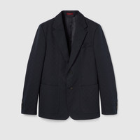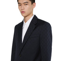 For the Pre-Fall 2025 collection, a leisure-inspired approach to formalwear introduces new silhouettes and cuts. Signature elements are combined with refined details. This jacket appears in dark blue GG cotton gabardine jacquard. - Dark blue GG cotton gabardine jacquard - Fully lined - Single-breasted - Notch lapel - Front chest pocket - Front pockets - Long sleeves - Front button closure - Made in Italy