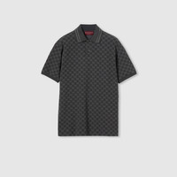 The distinctive GG is translated across different textile techniques in the collection, offering visual richness. Crafted from GG cotton piquet jacquard, this polo shirt is defined by striped polo collar. - Black and grey GG cotton piquet jacquard - Striped polo collar - Short sleeves - Button closure - Regular fit - Length: 28.7"; Shoulder: 18.7"; Chest: 22.4"; Sleeves length: 9.4"; based on a size M - Made in Italy